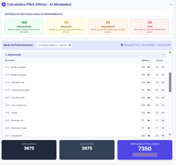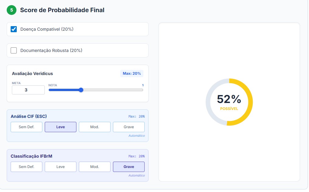 Calculadora do Indice de Funcionalidade Brasileira Aposentadoria que faz parte do nosso calculo para estimar o sucesso na demanda por direito social.